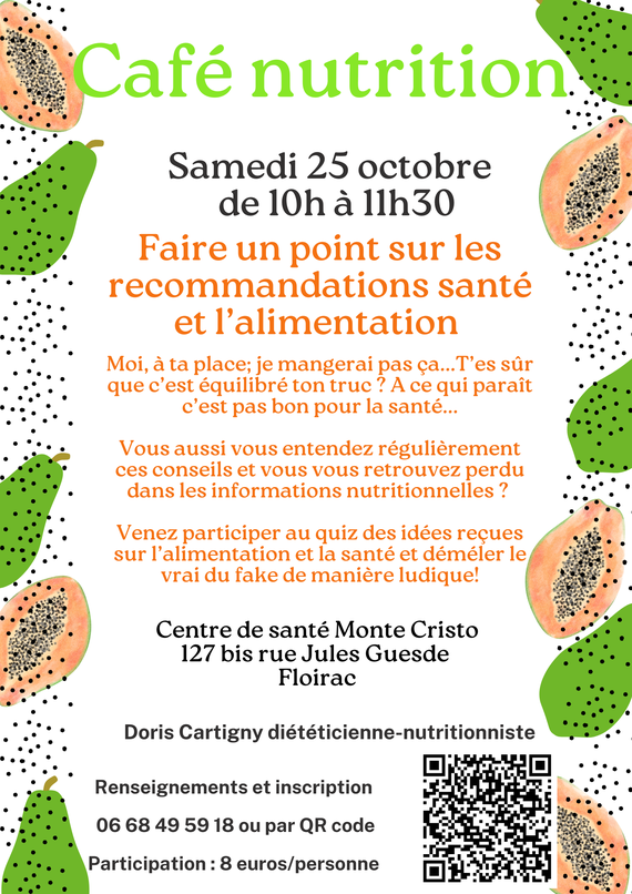 Vous êtes plutôt groupe ou collectif et vous souhaitez passer un moment convivial... Alors les ateliers "café nutrition" sont pour